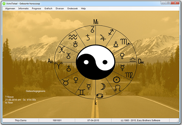 De horoscoopkeuze: Geboorte, Solaar, Lunaar, Relatie (gemiddelde in tijd en ruimte) en Composiet (midpunten tussen twee horoscopen en de aspecten tussen beide horoscopen).